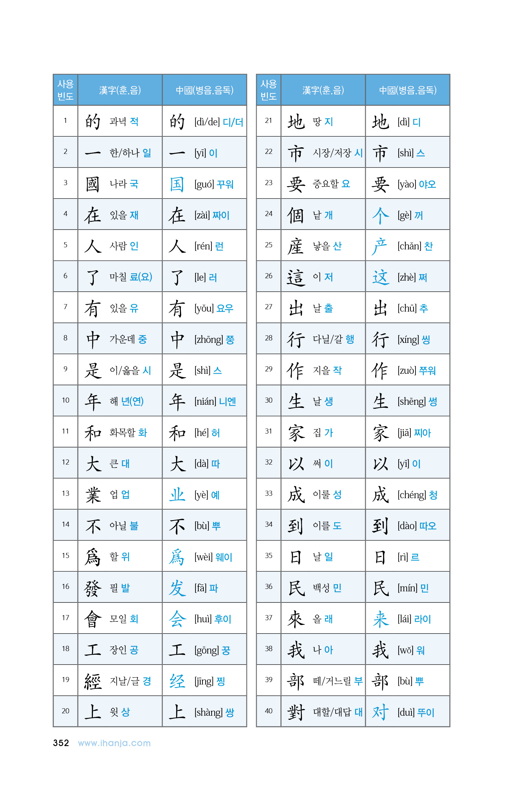 ■중국에서가장 많이 쓰이는 한자 500자(사용 빈도순)------ 351p