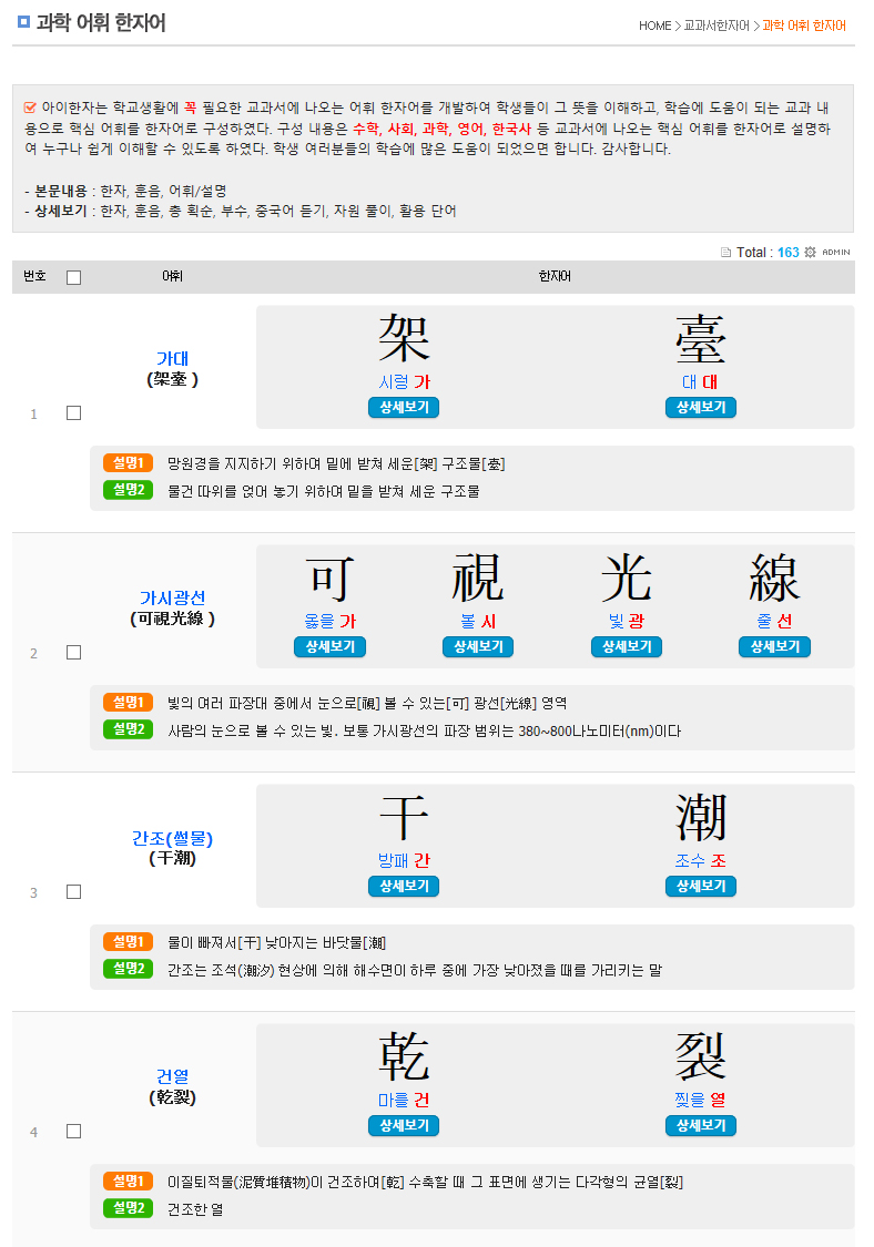 -본문 내용 : 한자, 훈음, 어휘/설명