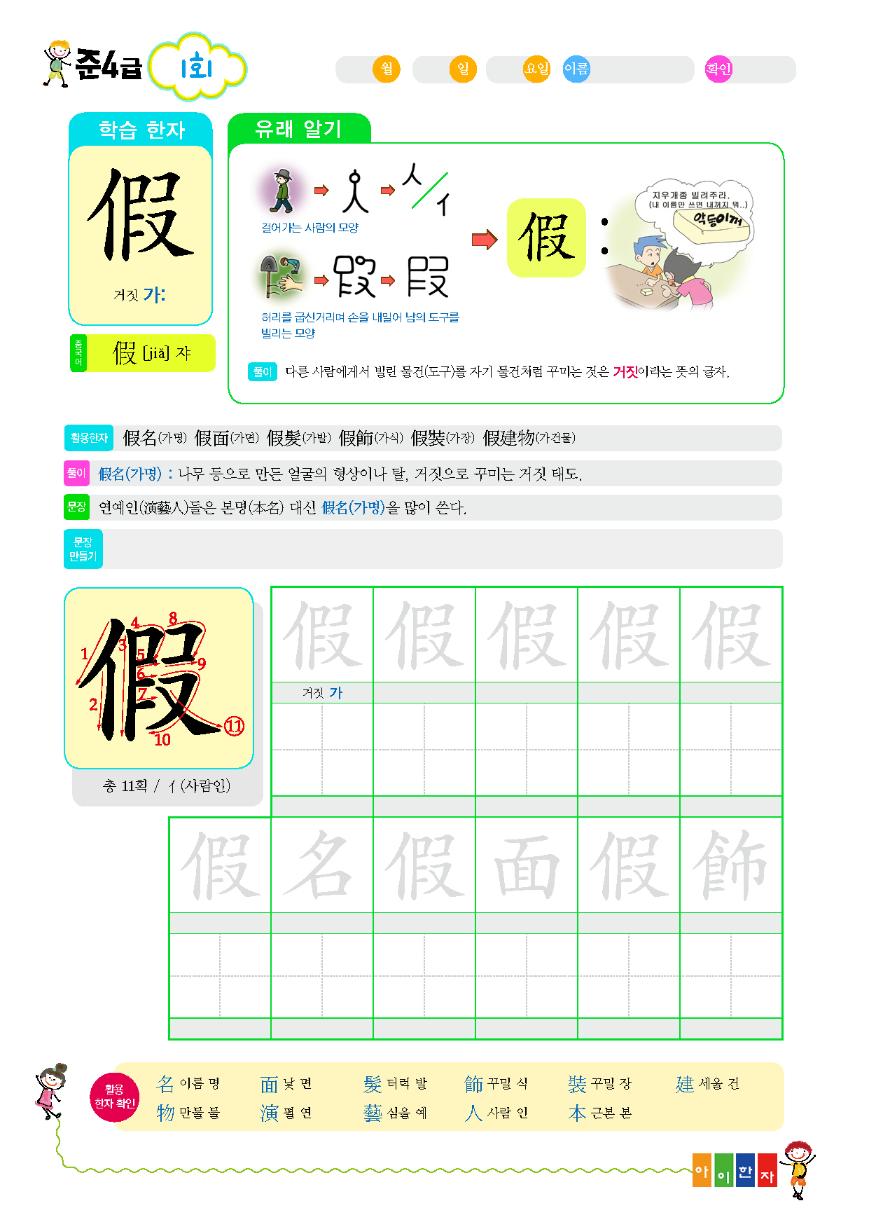-획순 표시 및 부수 : 쓰는 순서를 한눈에 알 수 있게 하여 쉽게 따라 쓸 수 있도록 함