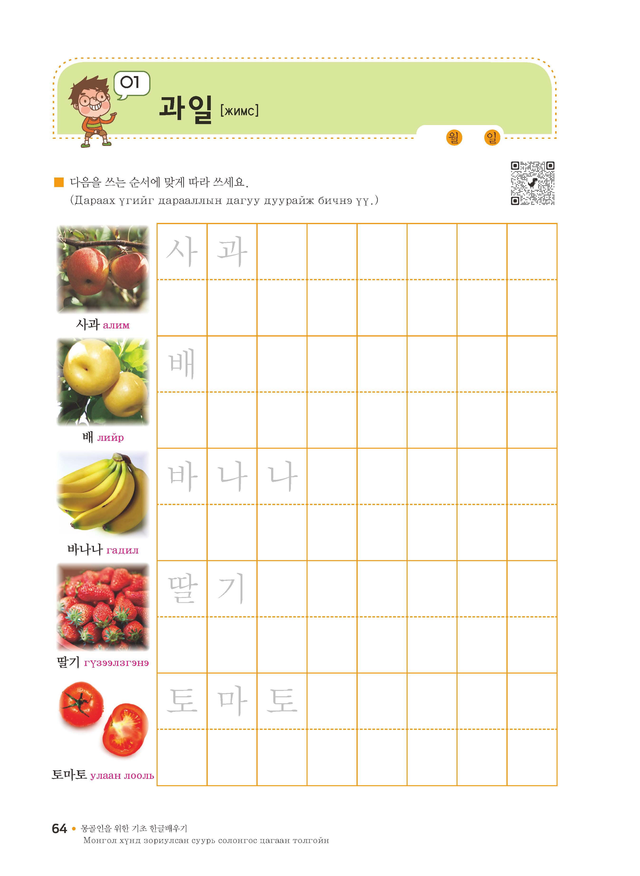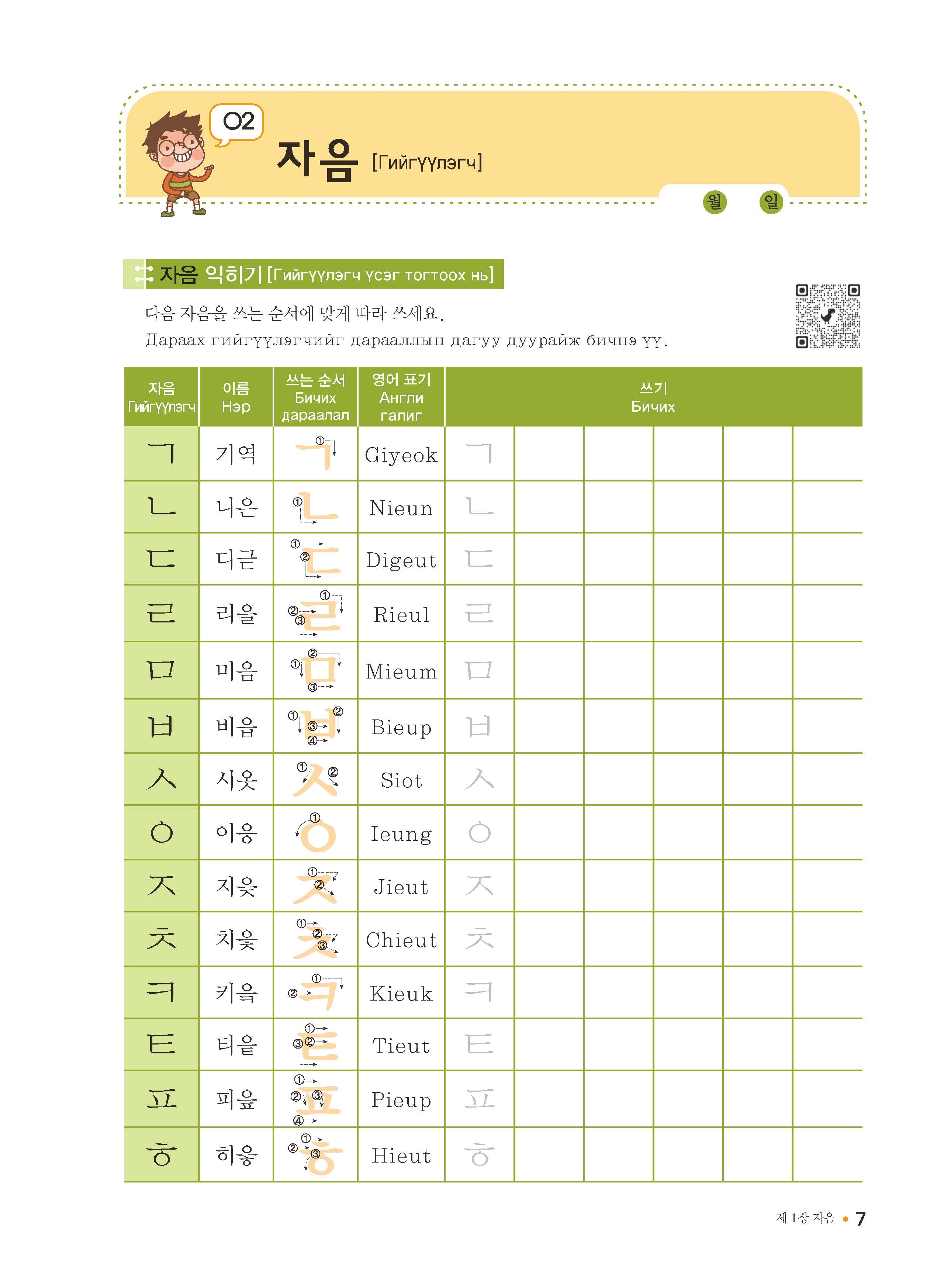 이번에 '몽골인을 위한 기초 한글 배우기 1호 기초편'을 위와 같이