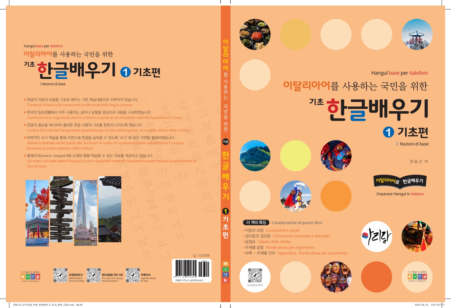 2016년도부터 준비한 'k-한글'(www.k-hangul.kr)의 교재를 22개국 언어로 번역한 책이