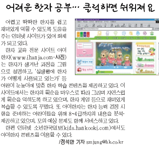 [인터넷을 통해 온라인 初等學生 漢字敎育 전문사이트]