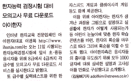 2002. 05. 03 [전자신문] 한자능력 검정시험 대비 모의고사 무료 다운로드